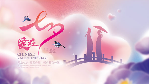 爱在七夕粉色展板