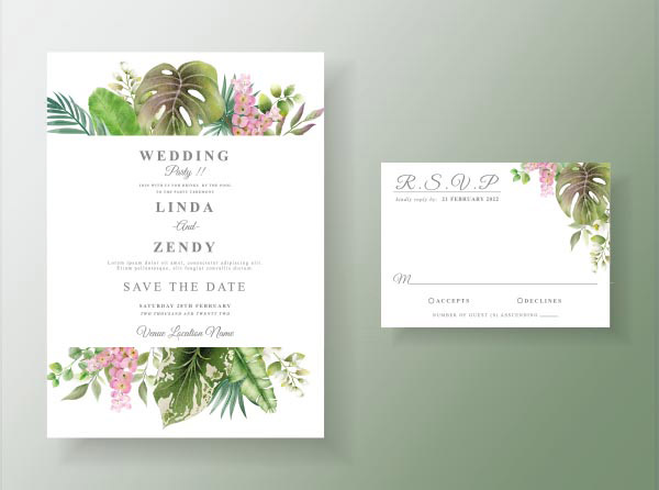 水彩花卉婚礼请柬