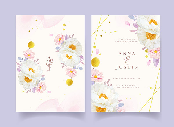 水彩牡丹花婚礼请柬