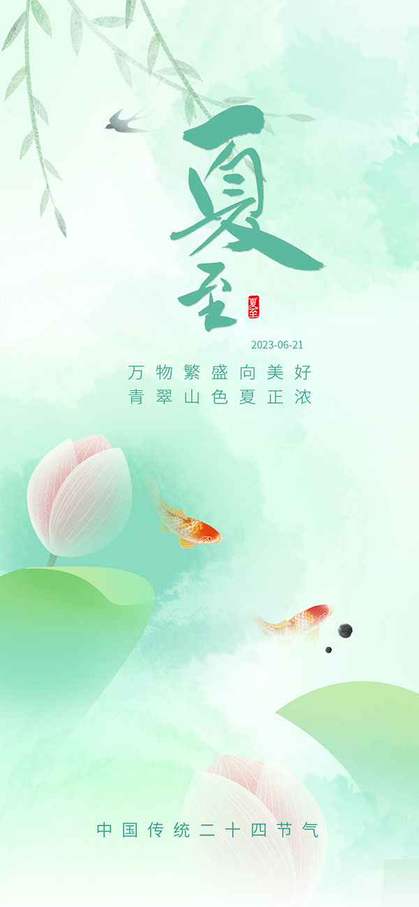 水彩风夏至手机海报