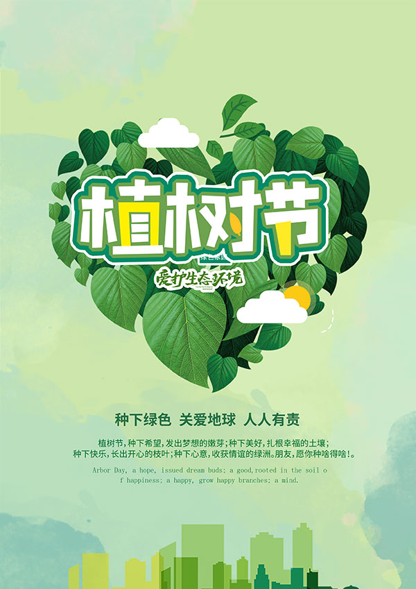 心形树叶植树节海报