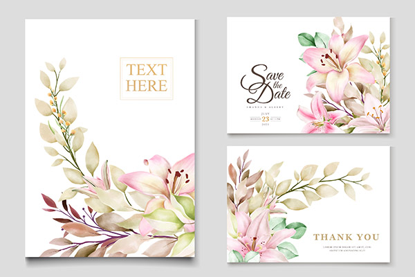 水彩百合花装饰邀请函