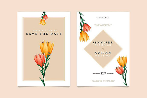 柠檬花装饰婚礼邀请卡