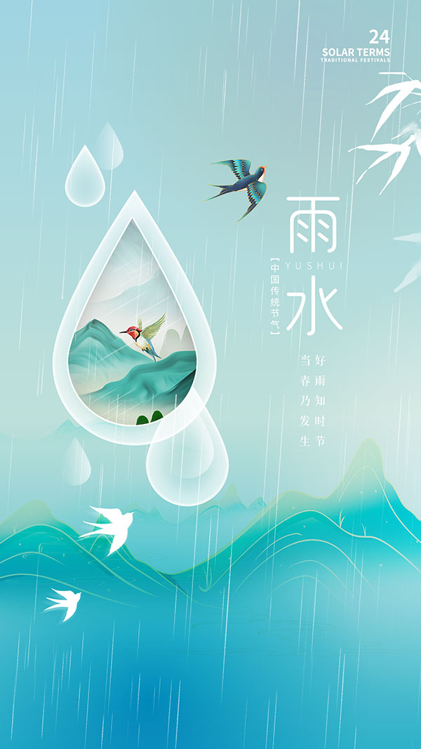 雨水节气手机端海报
