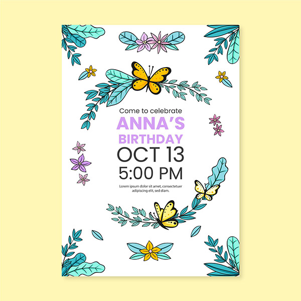 手绘蝴蝶生日请柬