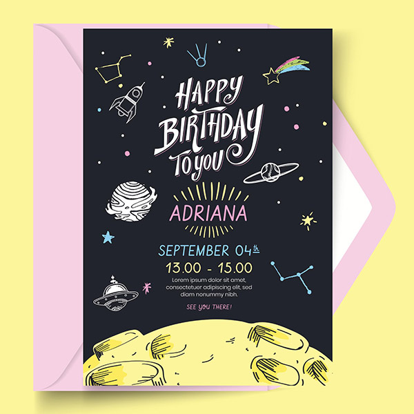宇宙主题生日邀请卡