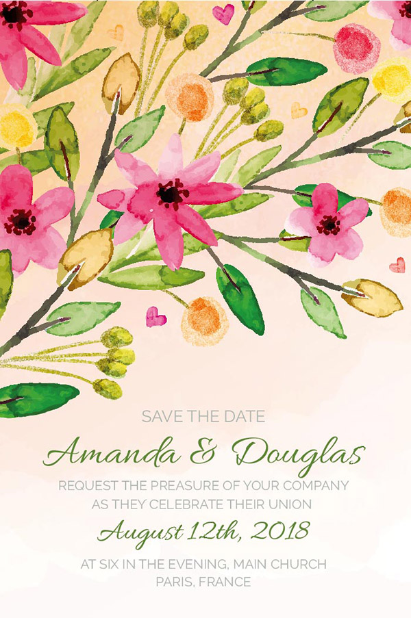 水彩花卉婚礼请柬
