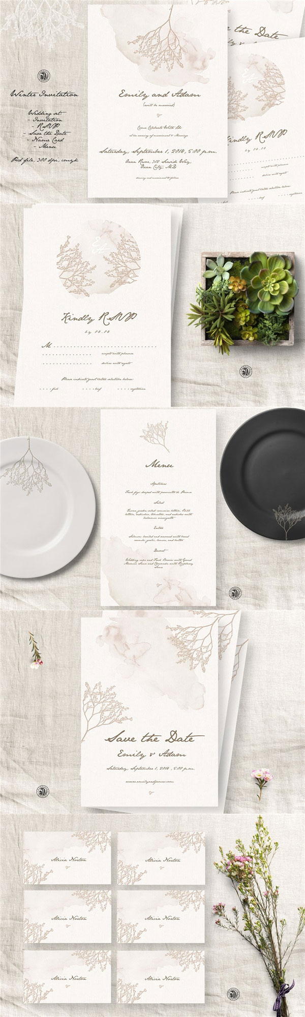 花卉婚礼邀请套件