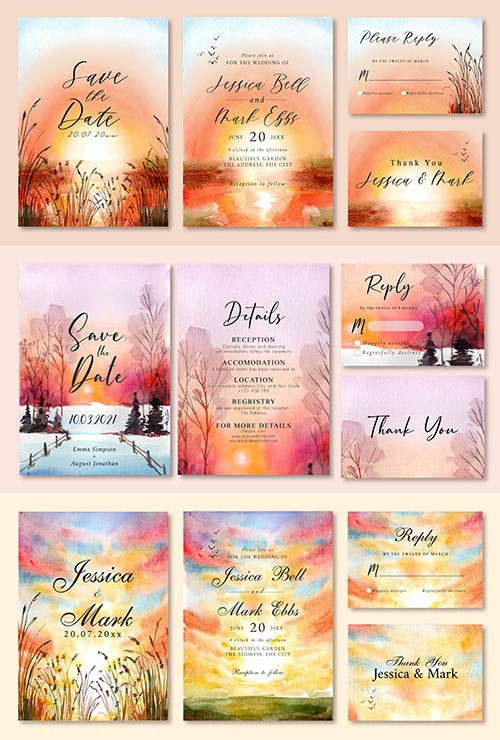 手绘水彩插画请柬