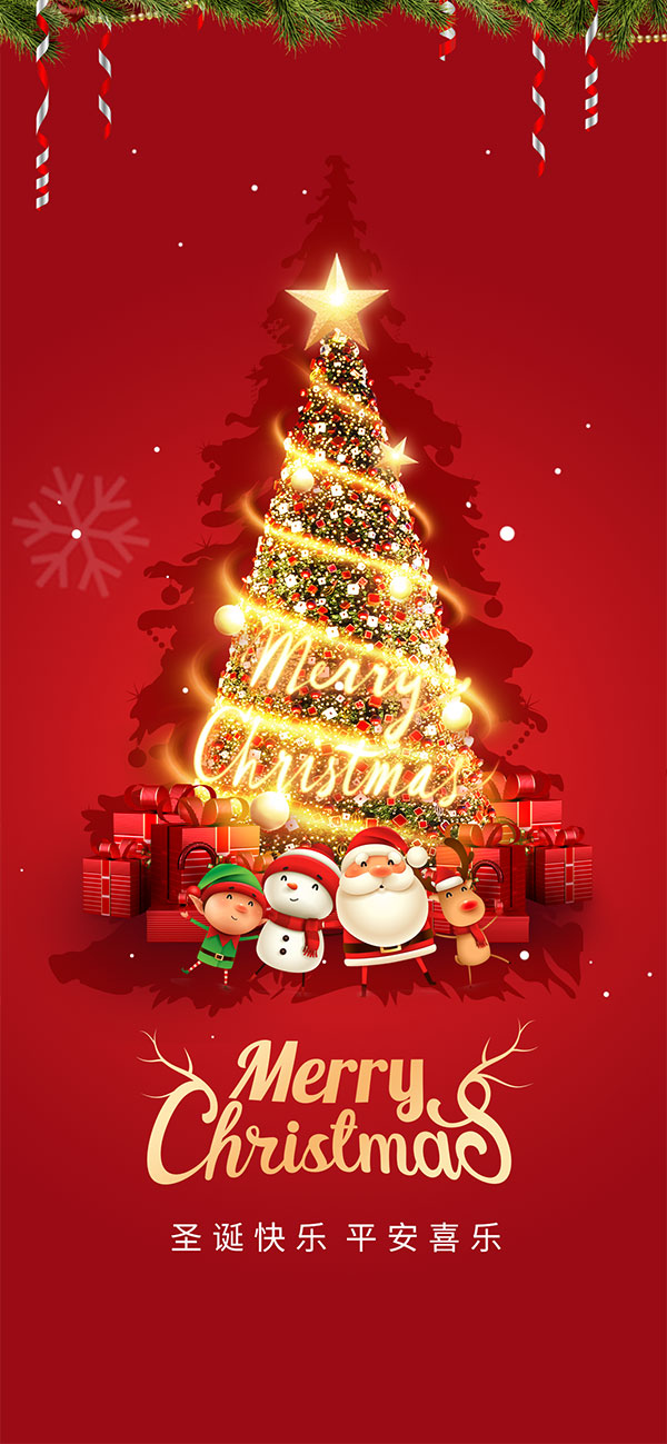 红色圣诞节手机端海报
