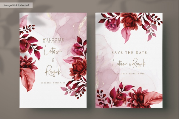 红栗色花朵婚礼邀请卡