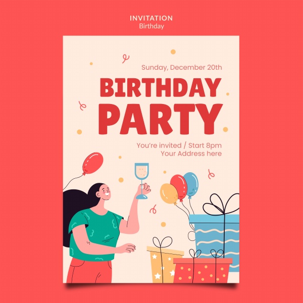 手绘生日庆典邀请函