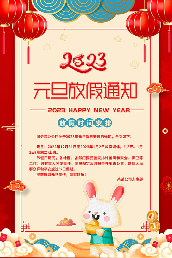 2023元旦放假通知海报