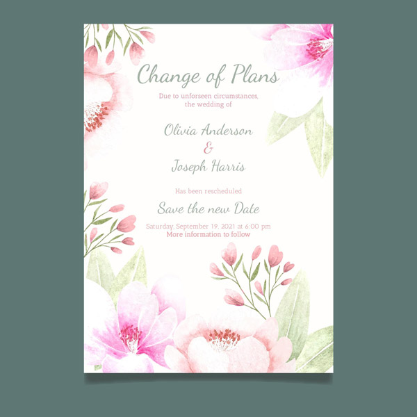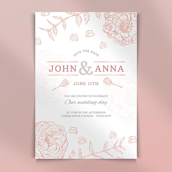 手绘花卉婚礼请柬模板