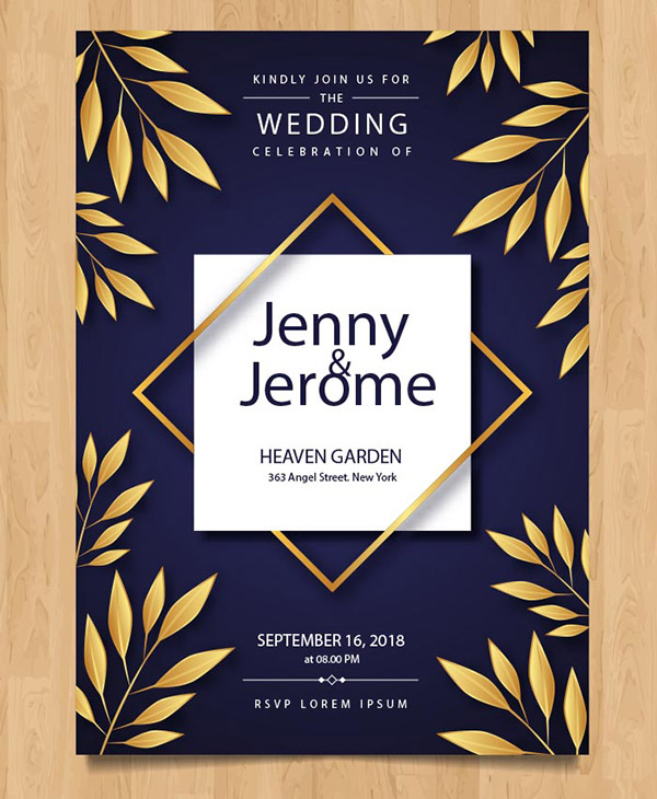 金色叶子婚礼请柬模板