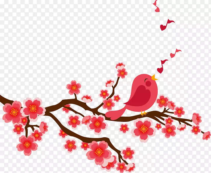 鸟唱卡通片艺术.卡通鸟李枝