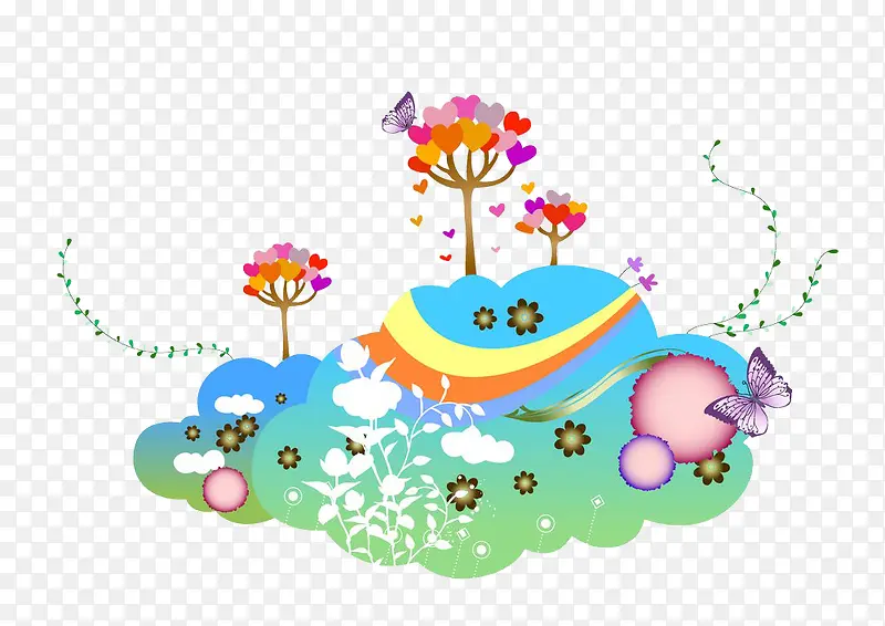 卡通彩虹云朵图案