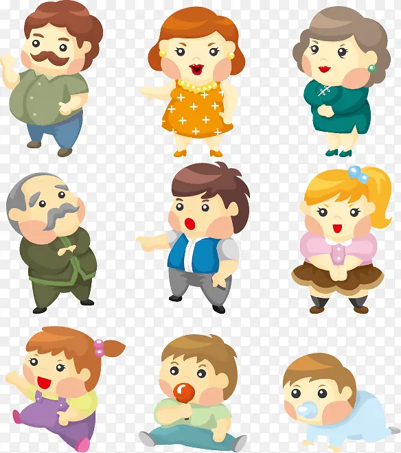 可爱的卡通家庭人物矢量素材,