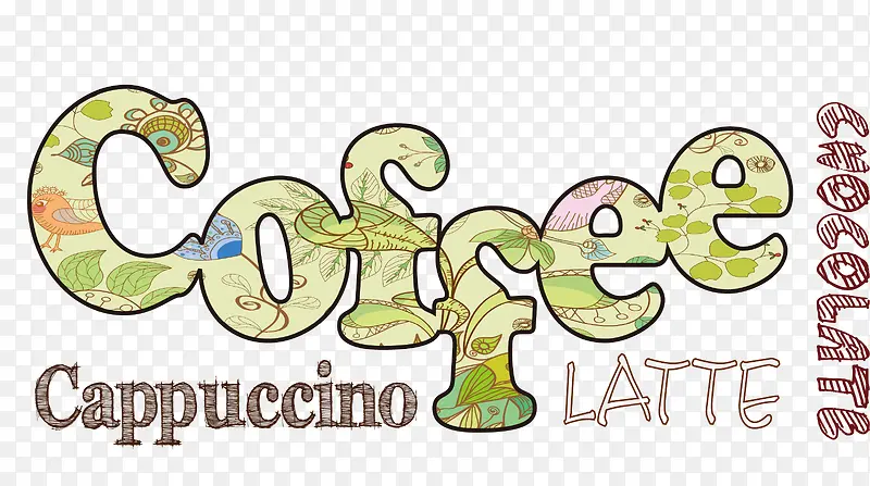 咖啡艺术字卡通手绘矢量素材