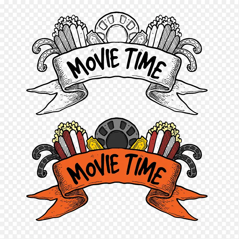 手绘电影元素条幅装饰矢量图