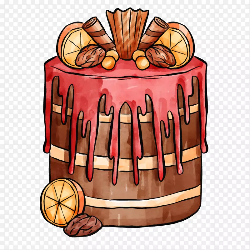 水彩风手绘生日红色奶油巧克力蛋
