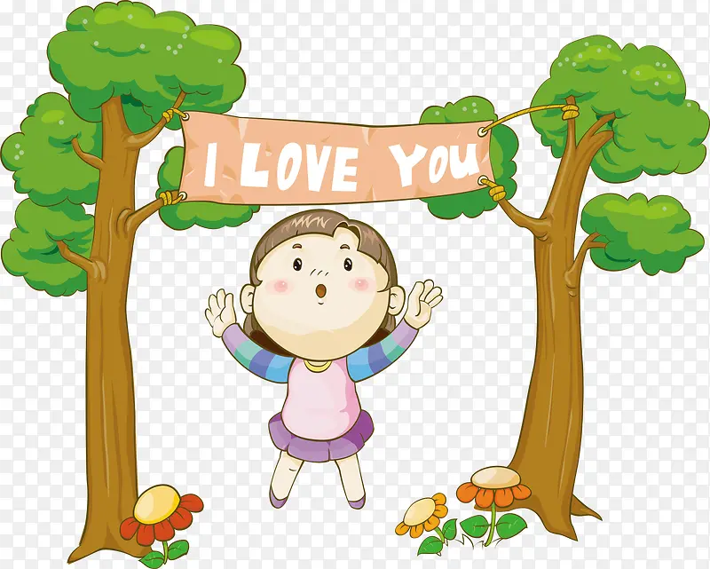 卡通树与卡通女孩