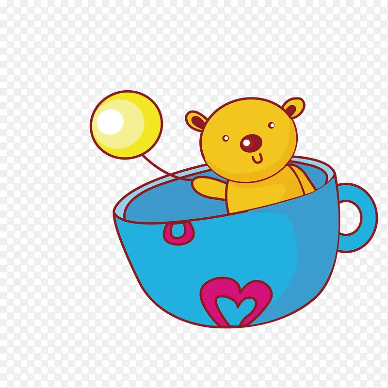 矢量卡通杯子小熊气球