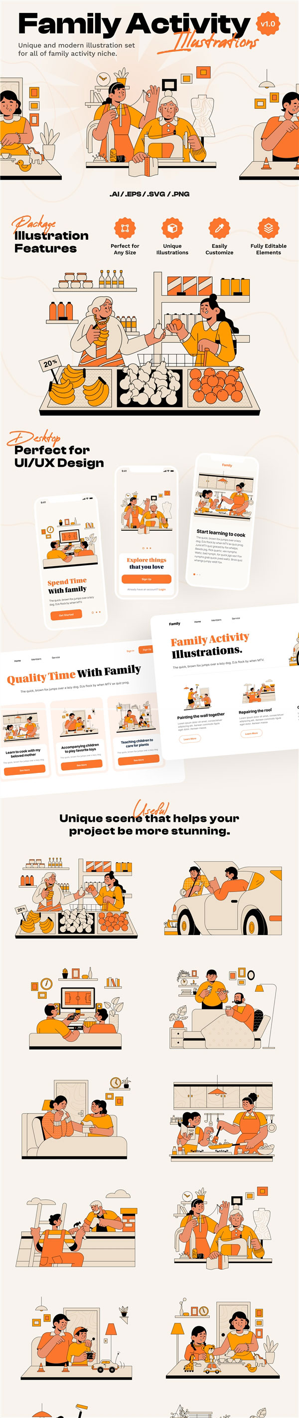 家庭生活场景人物插图