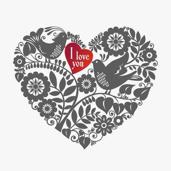 情人节浪漫爱心花卉小鸟