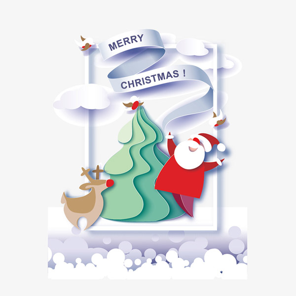 可爱剪纸圣诞矢量插画