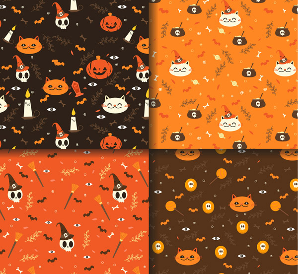 万圣节猫咪无缝背景