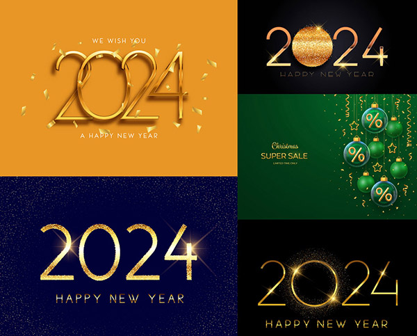 圣诞挂球与金色光效立体字