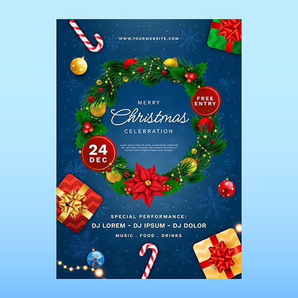 圣诞节花环装饰海报