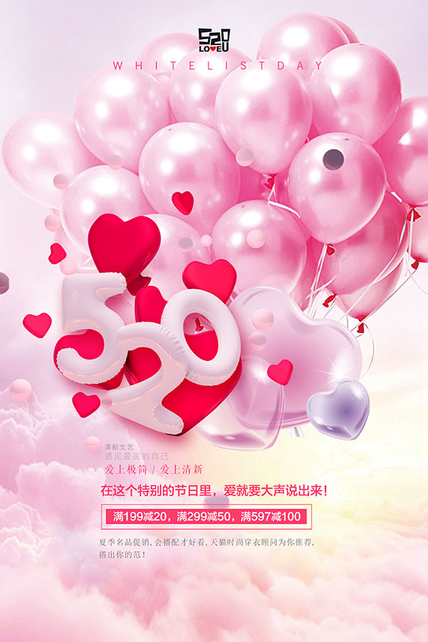 粉色浪漫520促销海报