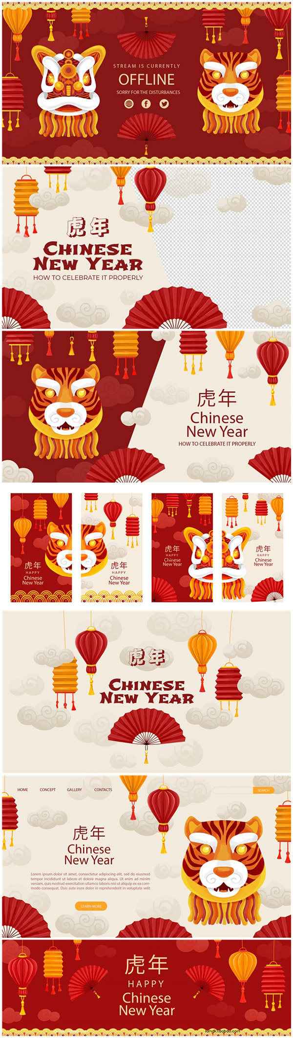 手绘虎年春节插画