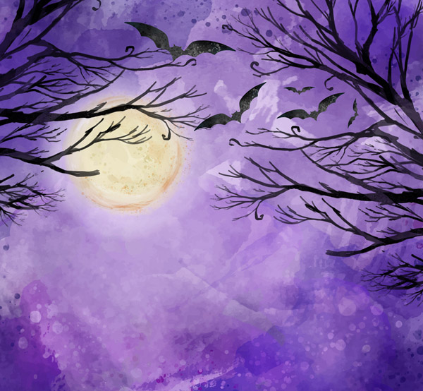 万圣节夜晚枯树