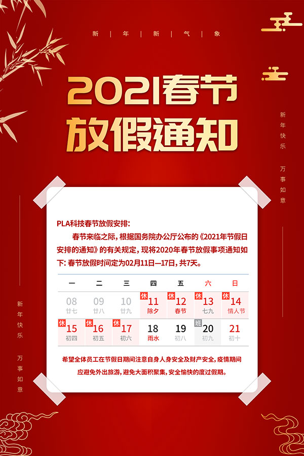 2021公司放假通知海报