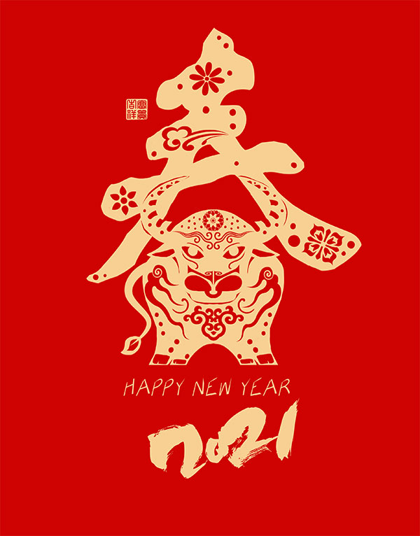 牛年春节剪纸艺术字