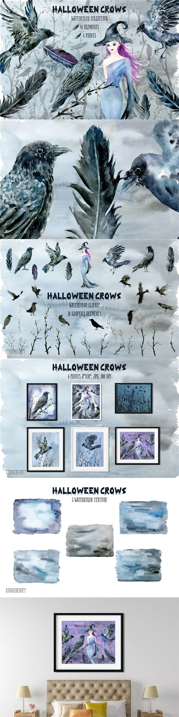 乌鸦巫婆水彩插图