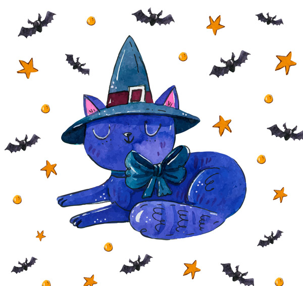 水彩绘蓝色猫咪