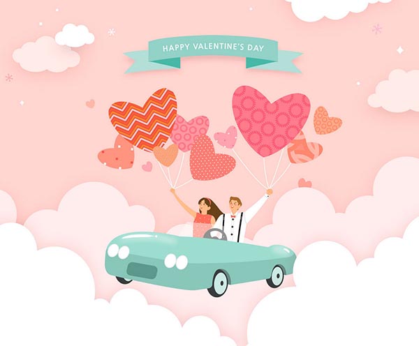 卡通爱心情人节海报
