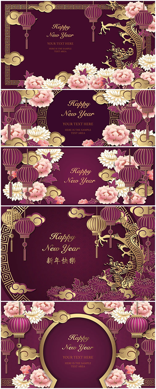 春节灯笼花朵与祥云