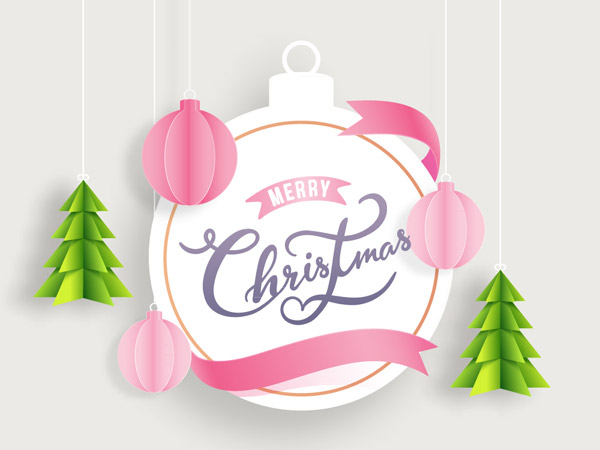 圣诞吊球和松树贺卡