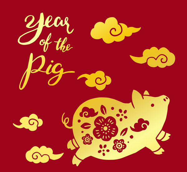 剪纸金色猪年元素