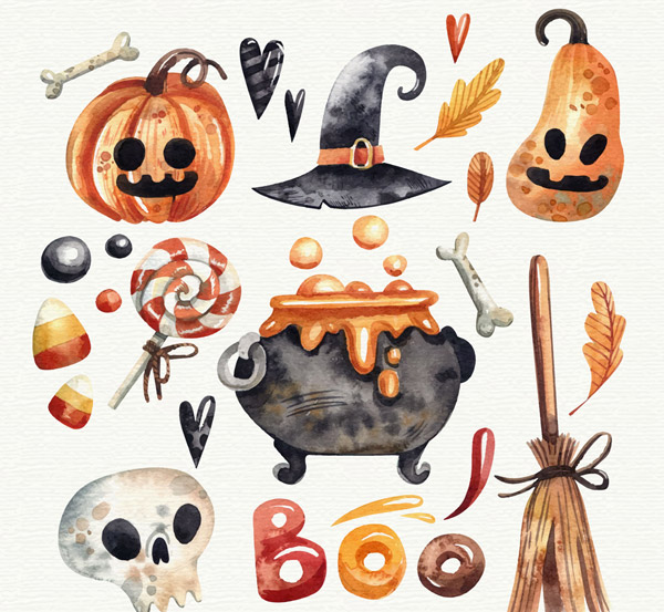 水彩绘万圣节元素