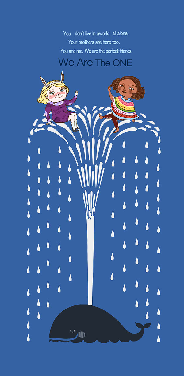 小孩和喷泉插画