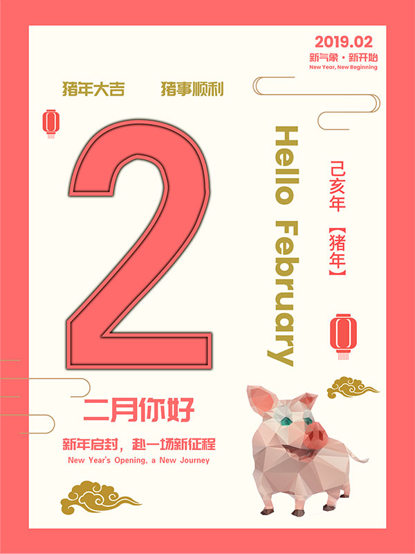 二月你好猪年大吉