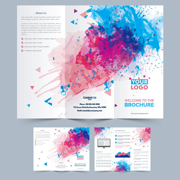 水彩喷溅三折页