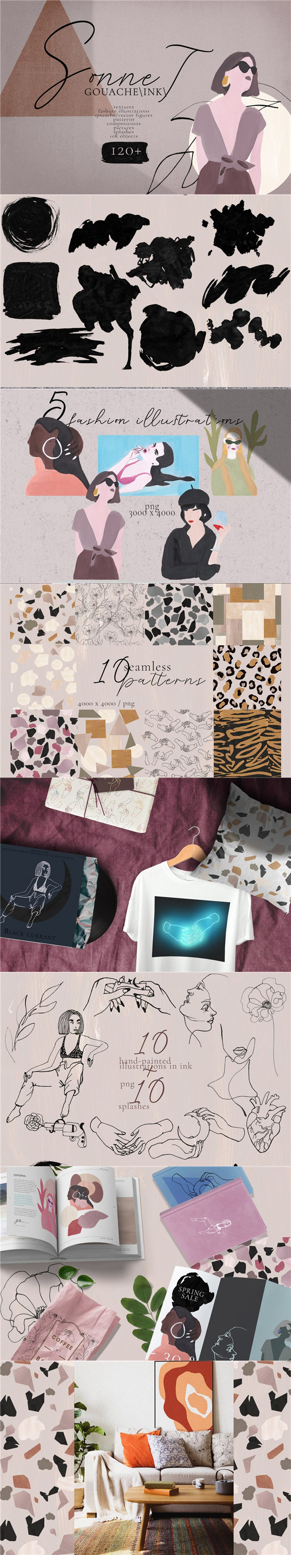 手绘水墨人物几何图形