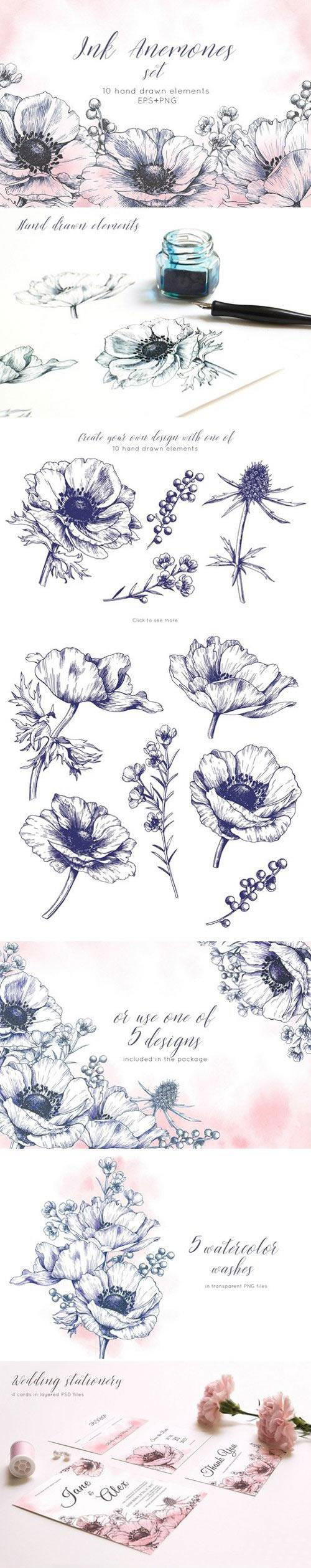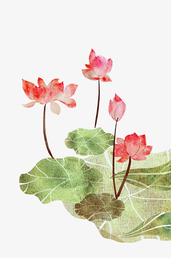 手绘水墨莲花树枝